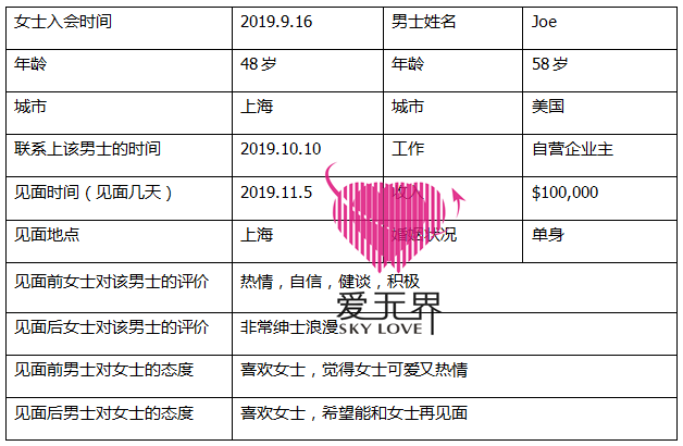 通过这次约会,刘女士感受到被爱、被珍视的感觉,重新找回新生和自信。在寻找另一半的路上,如果在国内恋爱里走不通的时候,不妨换跨国交友的路试试,或许你会发现别样的惊喜和幸福。