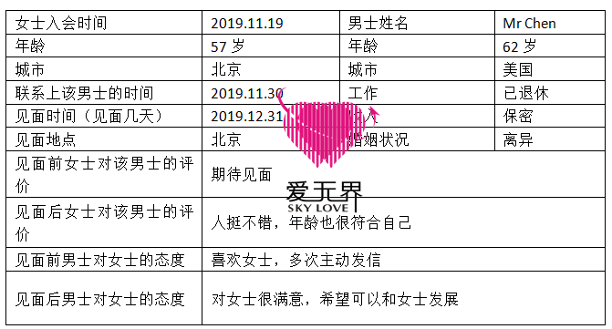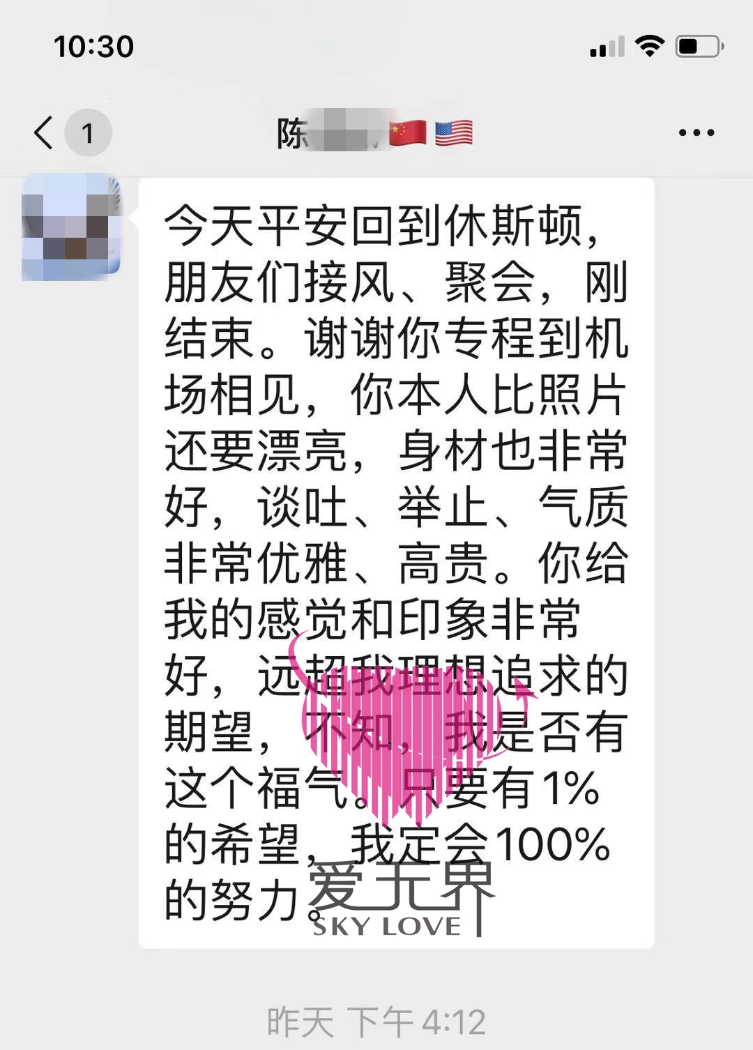 恰好两人联系时,男士探亲结束,正准备返回美国,时间很紧迫,但他依旧想把握住这短短的时间和芳姐见面。说做就做,Mr Chen立刻搭乘了从山东到北京最早的一班火车,真正到达北京时已经中午12点多了,而男士是3点的航班,每一分钟都非常宝贵。
