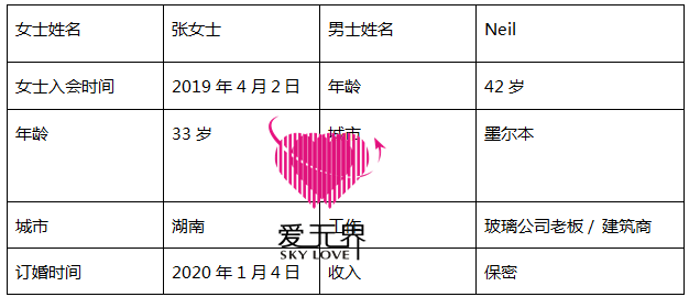 2020年1月4日,张女士给阿里红娘发来喜讯!她和Neil订婚啦!男士刚刚求婚,张女士就迫不及待地和我们分享了这个好消息,此刻的她脸上洋溢着幸福的笑容,激动人心的一刻!