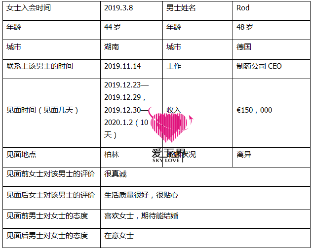 11月14日,她在阿里红娘再次邂逅了她的德国情缘,Rod,制药公司的CEO,曾经德国的百万富翁。
