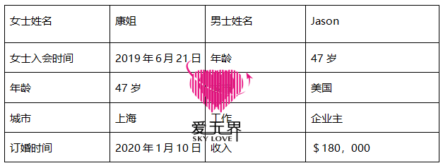 果然,按照这样的方法,康姐很快就遇见了自己的白马王子,Jason,他来自美国,是一名企业主,和康姐一般岁数,非常帅气…