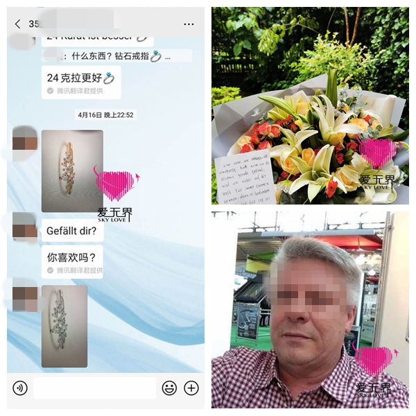 4月21日蒋女士44岁生日当天,同时收到来自两位追求她的男士的礼物惊喜,分别是来自壁炉老板Andrew的花和来自德国Chris的蛋糕,Andrew还要给她挑选戒指向女士求婚,并发来戒指款式征求女士的意见!对于蒋女士来说,这是她过得既幸福又有意思的一次生日了!