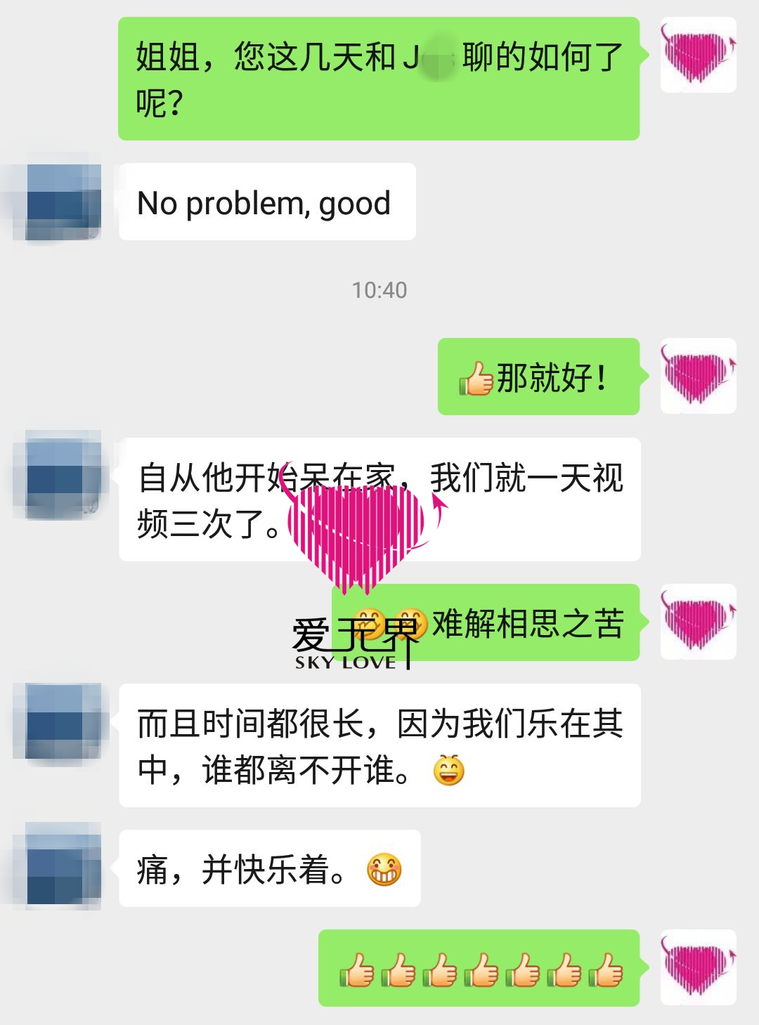 自从隔离在家之后,男士Joe每天至少和张女士视频三次,两人的感情一路飙升,每天两人都带着对彼此的思念和恋爱的甜蜜入睡;
