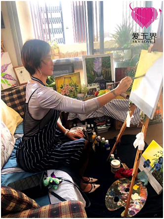 (张女士在家中画画)