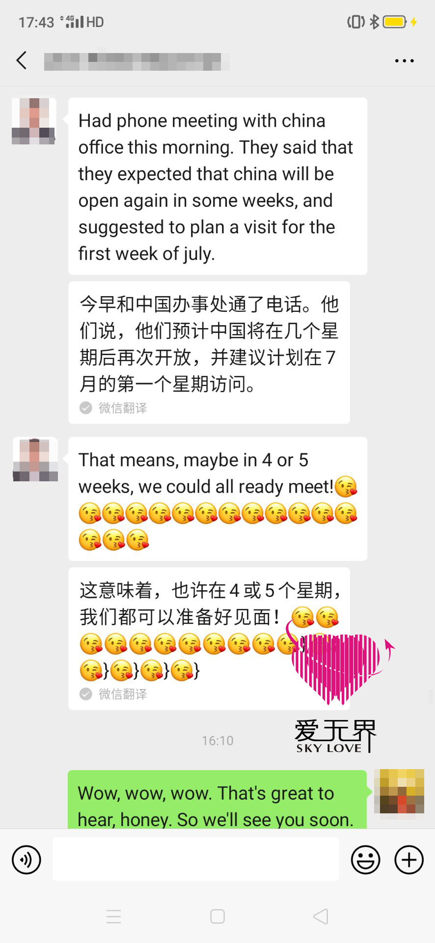 已经迫不及待要和刘女士相见的Nevis早已打电话给当地的驻华大使馆询问通航的时间,好在七月份就可以飞来中国了,得知这样的好消息,他第一时间告诉了刘女士,彼此的激动真是一言两语都道不完。