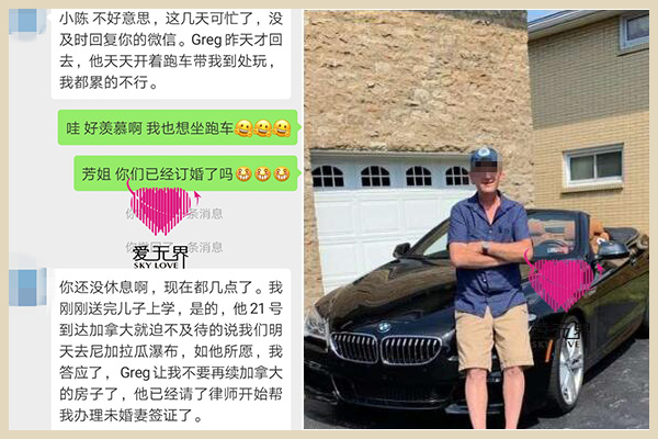 Greg就是典型的外国男士,热情奔放,对待感情一腔热情。在两人还不知晓这段感情会走向何处时,他就开着他价值几十万美金的宝马跑车一路狂奔,从美国宾州开6个小时的车去加拿大见芳姐。
