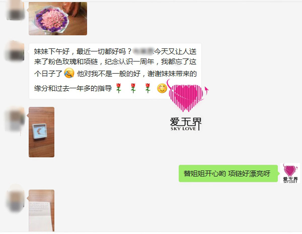 在两人相识一周年,范女士收到了Black的礼物,一大束粉色的玫瑰和项链。虽然女士已经多次表示:你的爱就是最好的礼物,但Black仍会时不时就给范女士准备礼物。