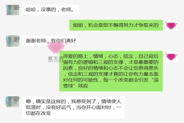 来自大连的韩女士在44岁时选择加入阿里红娘国际交友,希望找到一段幸福的国际交友。在韩女士与阿里红娘交友情感咨询老师多次交流下,她改变了自己很多,如不再沉浸在负面情绪中,对未来的生活要充满相信和向往;和西方男士相处的过程中不能太过卑微,要敢于拒绝自己不喜欢的话题,和对方表明自己的立场和底线;学习国际交友中常用的英语......一步步的蜕变,让韩女士遇到了美国Roy。