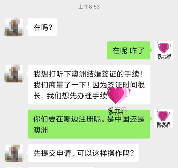 征友交友新进展,阿里红娘国际交友的会员胡女士和澳洲男友在商量结婚啦,已经在着手结婚移民办理的手续。