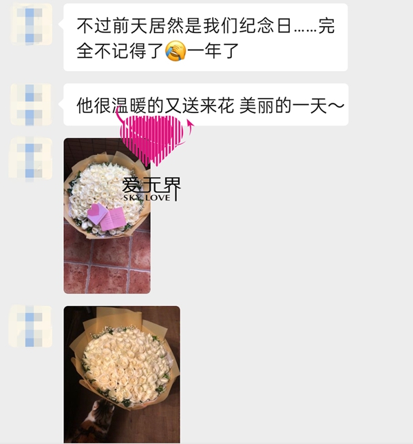 你问我外国男士有多浪漫,我还真说不出来,和他在一起后,我只知道我收花收到手软。我们的一周年纪念日都他都记得清清楚楚的,反而我完全没了这回事。看来之后我还是得把这些日子记在手机备忘录里,可不能输给他了。