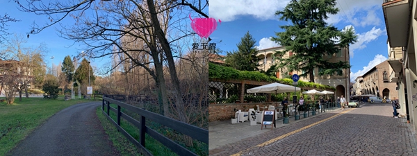 飞机坐了十几个小时,下飞机的时候我已经很困了,但是在从米兰回去的车上,我基本上没睡着。因为意大利实在是太美了。它给我的第一印象,是通透和鲜明。在飞机即将降落时,我向下俯瞰,大片的绿地,错落的砖红房顶,每一处建筑群里都能看到教堂钟楼的塔尖。而回家路上的雪山、山脚下的房屋、半山腰上的城堡...这些都让我惊喜和激动。