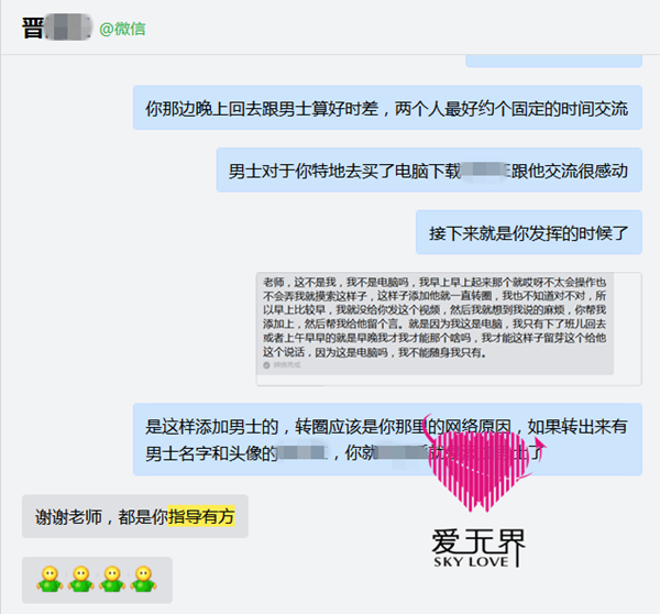 而她的行动,也与她的决心一致。在服务期间,晋女士一直配合着阿里红娘的服务团队,并愿意付出努力。因为地域问题,晋女士遇到了一些困难,甚至无法跟西方的男士加上私聊。阿里红娘的服务团队就特意去询问了新疆当地的朋友关于登录社交软件的情况,找到解决办法后,晋女士连夜去买了电脑,不太会操作就请教自己的老师。