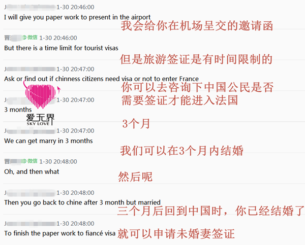 晋女士从202012入会至今,仅1个多月就与法国男士Jesse相识相恋,难分彼此,商量着要在第三方国家见面。Jesse更多次提出想要跟晋女士结婚,甚至开始计划在法国结婚的相关事宜。