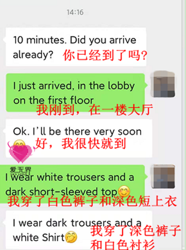 在见面之前,Cody专门了解梁女士是喜欢喝茶还是喜欢喝咖啡,梁女士也特意为了两人更愉快的见面请教了情感老师很多细节。在同一层次的人,或许他们冥冥之中就会有一种神奇的缘分,当Cody到达上海,两人在一间高档的茶餐厅见到面时,梁女士穿着白色裤子深色上衣,Cody就穿着白色上衣深色裤子。