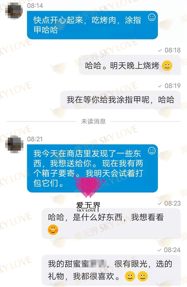 Roy简直是痴情的代表之一了,阿里红娘服务组对他和韩女士的晒恩爱甚至开始习以为常。或许Roy自己都没有察觉到,那个有些木讷的自己,自和韩女士交往以来,就无师自通成了“情圣”。无论是自己闲逛还是和朋友出门,都会下意识地去寻找有没有韩女士会喜欢的,一旦看见适合韩女士的东西,就会毫不犹豫地买给她。从健身的蛋白粉到做了无数功课购买的女式首饰,面膜护肤品到化妆品,各种牌子的零食,甚至在中国平台订购的鲜花,大大小小的东西什么都有。对于Roy而言,寄来每一件礼品都不单是普普通通的物品,而是时时刻刻,向对方献上的自己的真心。
