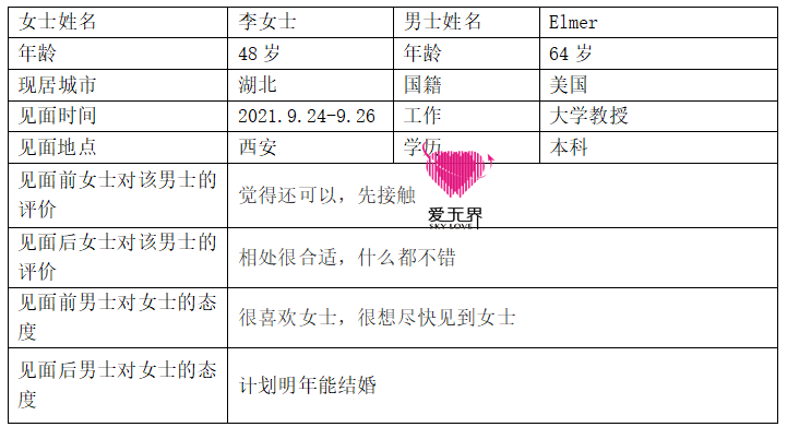美国男士Elmer的出现,就正是情感老师用尽心思的体现,他被李女士的资料给吸引住了,主动发起交流,表示自己目前在中国当大学教授,想找个在中国的妻子。Elmer非常有诚意,很快就把自己的情况先展现出来。