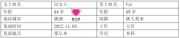 如此体贴的Vic让田女士又充满了勇气,面对Vic的见面邀约时,果断就答应了。