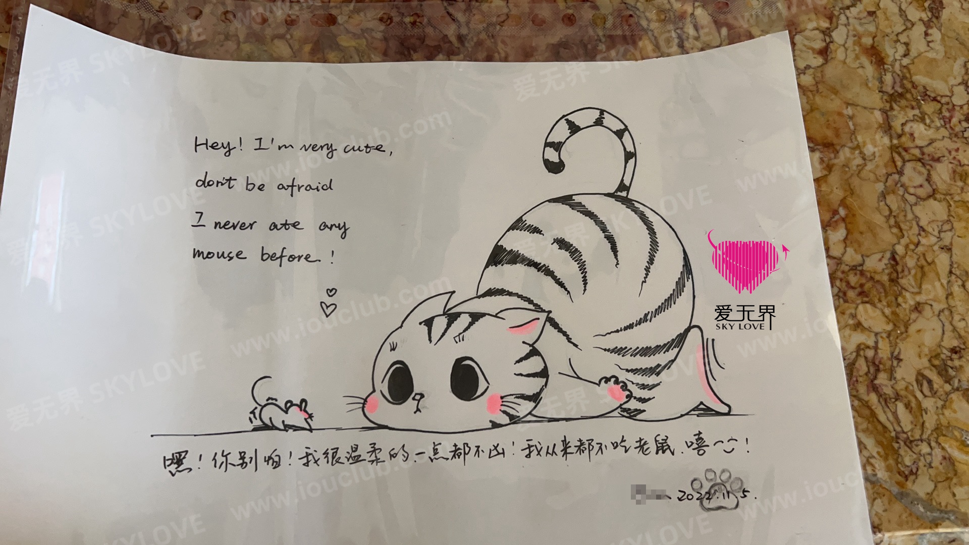 有了上一次见面的经验,这次田女士从容了不少,也不再急躁,而是保持放松平和的心态去对待。她给Vic画了一幅可爱的画,准备好翻译器,在11月5日赴约了。