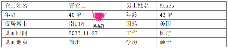 整个见面,Moses的举止都很绅士,聊天也很风趣,曹女士对他印象不错。