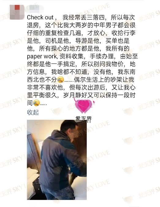 在家时带娃、家务活这些事完全不需要何女士操心,大小事物都是Black统统包办。出门旅游时,Black也会做好所有规划,收拾行李是他,司机是他,导游是他,买单也是他。