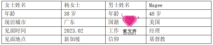 美国的Magee便是符合杨女士理想中的那一位,48岁的他担任高级管理,是一位虔诚的基督徒,工作上认真有序,生活中温柔谦卑。和杨女士的交流,Magee也表现得绅士,真诚。