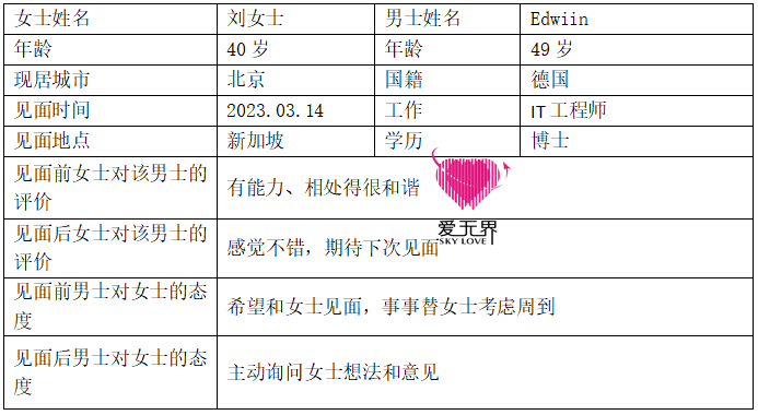 德国的Edwiin今年49岁,是一位IT工程师,工作认真出色。博士学历的Edwiin才华横溢,谈吐不凡,刘女士和他交流得很开心。