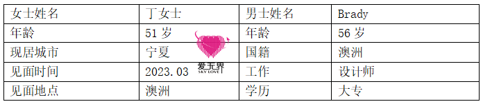 丁女士和Brady已经认定了对方就是相伴余生的人,Brady在着手办理中国的签证,打算月底一起到国内见家长。期待~