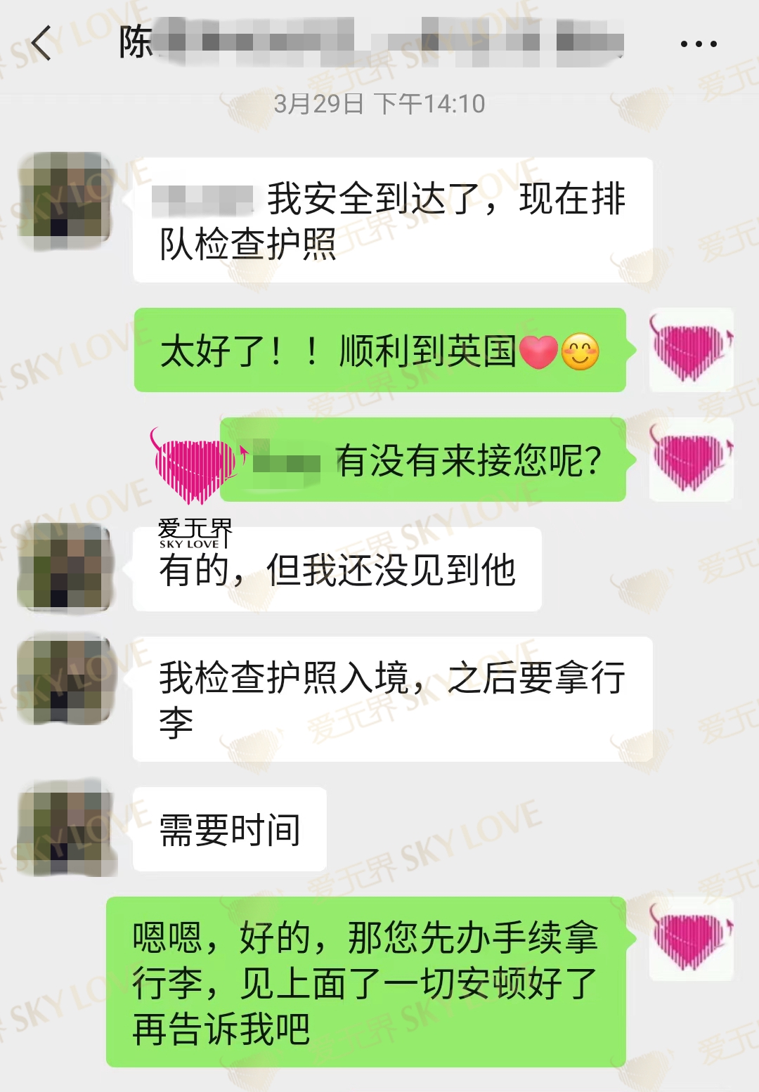 3月28日,陈女士怀着期待的心情踏上了飞往伦敦的航班。Duke也一夜都没怎么睡觉,一早开车到机场等待陈女士,非常真诚。如此举动,让陈女士很感动。