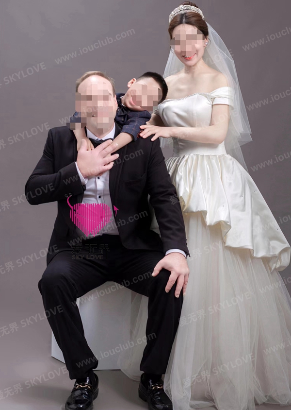 还有充满仪式感的全家福,张女士的儿子俏皮地环着Neil的肩膀。Neil对张女士的儿子视如己出,孩子也很喜欢这个外国爸爸,一家人站在镜头前,隔着屏幕都能感受到那满屏的温馨。