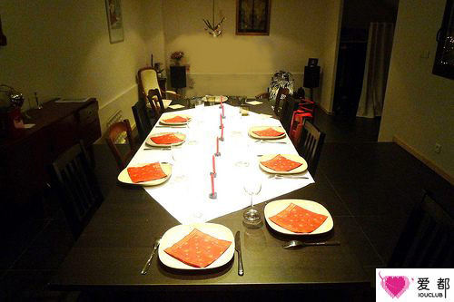 拿签证比较晚,本来打算在国内过了春节再回去的,但是老公的签证和机票都定在了1月底,所以最后还是在法国过的春节,这里很少有过中国年的老外,老公给了我一个超大的惊喜,初二那晚邀请了妹妹一家过来,还有婆婆公公,既是庆祝我这个新的家庭成员,也是为给我过一个特别的西式大餐中国年,老公的妹妹布置的晚餐桌,简单又漂亮