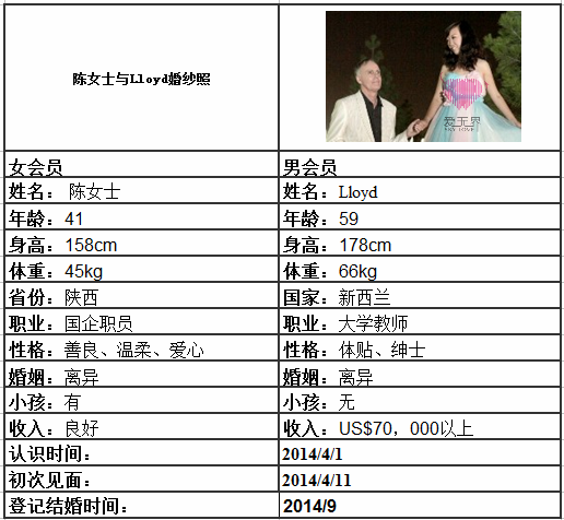 陈女士是通过好朋友何女士介绍进阿里红娘的,而何女士早在2012年已经通过阿里红娘与澳大利亚的男士Philip成功结婚出国了,点击查看何女士的成功故事!