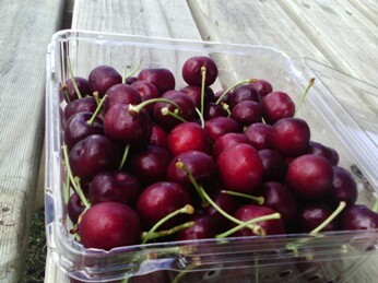 阳光灿烂,和Peter一起去摘樱桃哦,到处是有机的水果,摘下来直接入口哦,好甜!