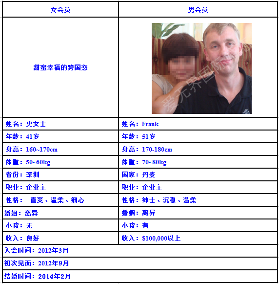 第一次看到丹麦男士Frank的资料的时候史女士并没有太多的想法,只是觉得可以多尝试了解。慢慢地她发现Frank也是比较忙碌,信件内容写的不是很多,情感老师也一直关注Frank,起初有点担心Frank的真诚度,也适时提醒史女士需要更多的了解,开始不要抱太大的希望。在史女士看来,一个跟自己的一样忙碌的男人,如果真的是因为工作忙碌,信件少是可以理解的,因为自己也是如此,虽然真诚想交友但心有余而力不足。给力的是,虽然Frank话语不多,但是行动上确是很爽快实在,2个多月的简单信件以及skype交流后,Frank就定好了到深圳的行程和机票!史女士说,自己的信件表达能力不好,特别感谢阿里红娘的老师的贴身服务,无论是信件的优美语言表达,还是见面前的行程安排!