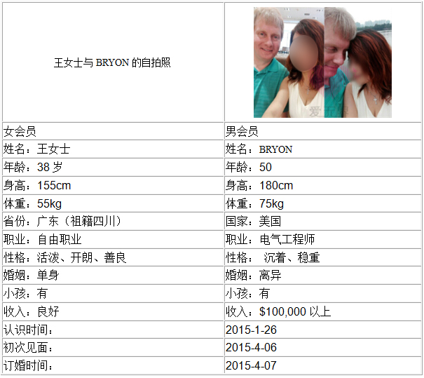 朵朵在一上线便受到了很多男士的青睐,在陆续和几位男士稳定交流后,朵朵在2015年1月遇见了来自美国的BRYON,BRYON50岁,来自威斯康星州,一米八的个子,是一位电气工程师。BRYON沉着稳重,无论是信中的交流还是视频见面都真诚而有礼貌,是一位有修养的男士。朵朵喜欢BRYON,虽然朵朵的英语交流还需要借助翻译软件,口语也还是很初学阶段,但因为共同的信仰,还有朵朵的阳光心态,BRYON很快陷入了爱河,他定好了4月初来中国的机票。他用行动表达,为爱而来!