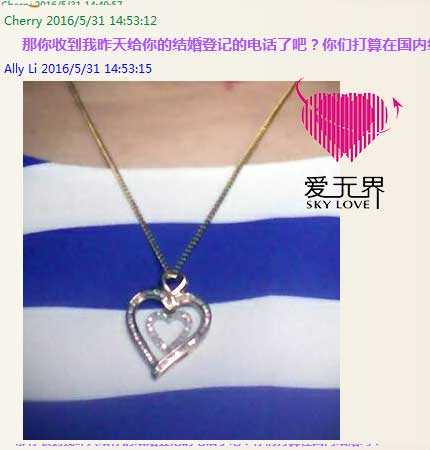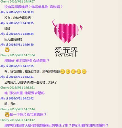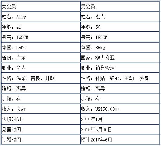 入会后经过形象设计,由澳洲教练Paul亲自为Ally挑选符合西方男士审美观的照片、制作她的个人英文档案和自我介绍(这能够让Ally在众多寻找外籍男士的女士中的脱颖而出)顺利的登陆平台,Ally就遇到了来自澳大利亚的男士杰克,从那一刻开始幸福已悄悄的向Ally靠近。Ally看到杰克的档案也是很喜欢。从写信开始到视频聊天,杰克除了包容Ally蹩脚的英语,他在生活上也给予Ally很多关心。Ally是一家服装店的老板,一个人在她这个年纪创业很不容易,而杰克恰好是从事销售管理工作,他对如何销售产品有自己资深的经验。除了生活上的体贴,Ally在工作上遇到困难,只要告诉杰克,他都会很认真地给意见出点子。关于孩子的成长问题,两人也会经常探讨,中西文化对子女的教育是完全不一样的,与杰克沟通越深入,Ally越向往国外的生活和教育环境。Ally迫切希望杰克能来中国和她见面。