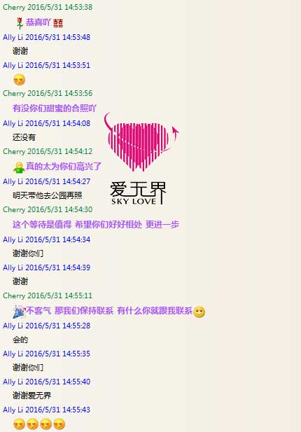 2015年10月至2016年5月,爱情花开,惊喜结果!祝贺Ally和杰克有情人终成眷属!