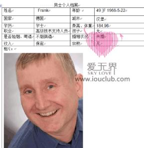 Wendy入会的第二个月已经与一位来自美国的男士见面,目前与另外一位德国男士Fank稳定交流,Frank