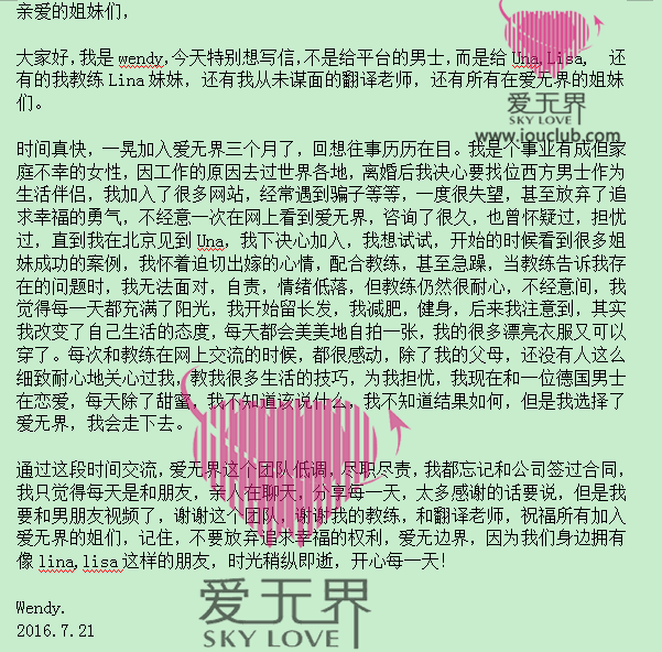 这是一位在服务三个月的会员Wendy写给阿里红娘团队的一封信!