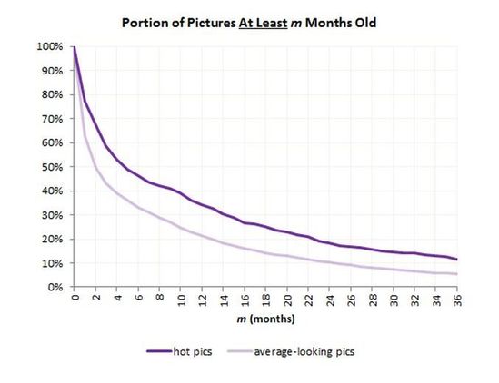 OkCupid 分析了用户照片的 Exif 格式(这里包括了拍摄时的光圈、快门、白平衡、ISO、焦距、日期时间等各种拍摄条件),发现那些被认为是热门美照的照片普遍比其他照片的拍摄时间更早。