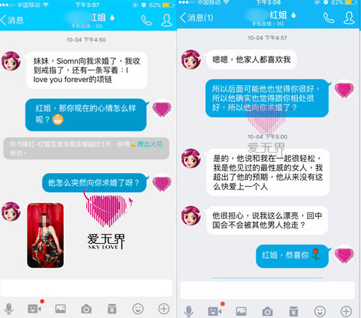 亲戚朋友也为自己叹气着急,每人都会在寒暄一轮后给建议,给的建议似乎都很有道理,可是无一不是劝慰自己好好把孩子带大,安分过日子,别想太多等等。可日子终究是为自己而过,冷暖自知,红姐决心不再受身边人的影响,下决心寻找她未来的幸福。2016年3月,红姐加入阿里红娘,她憧憬着找一位外国男士,带孩子到国外生活。