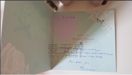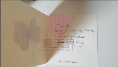 Paul的爸爸妈妈(Barbara and Ray)给未来的媳妇冯女士亲手写的生日卡片