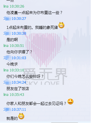 10月10日晚上,饭店房间,在冯女士亲戚朋友的见证下,Paul单漆跪下,深情看着冯女士“would you marry me?”