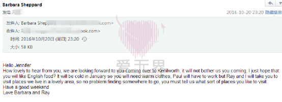 冯女士已购买1月26号到2-15号过去英国先见paul的父母,是否直接在英国结婚登记结婚还是按照之前所商量的浪漫约定是在paul 4月26号再来中国结婚登记,还在商量中。让我们一起祝福paul和Jennifer吧!