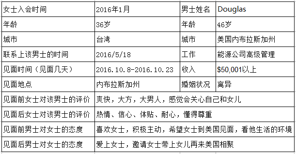细心体贴的Douglas有着一手好厨艺,相处十几天时间已把Grace的胃成功收服。Grace回国之前,Douglas多次提出让Grace帮她女儿也办好签证,下次一起来美国,赶得及的话,希望能一起过圣诞节!