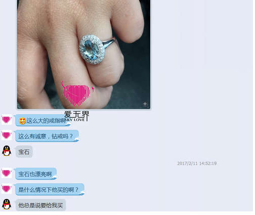 善解人意的陈女士挑选了一个价格适中的蓝宝石戒指(价值3600澳币,约人民币18000元)。回想与Peter相处的点点滴滴,Peter的细心,Peter的体贴照顾,Peter的承诺……陈女士觉得Peter就是自己所等待的人,此刻她的内心充满了温暖和爱,她接受了Peter的求婚!