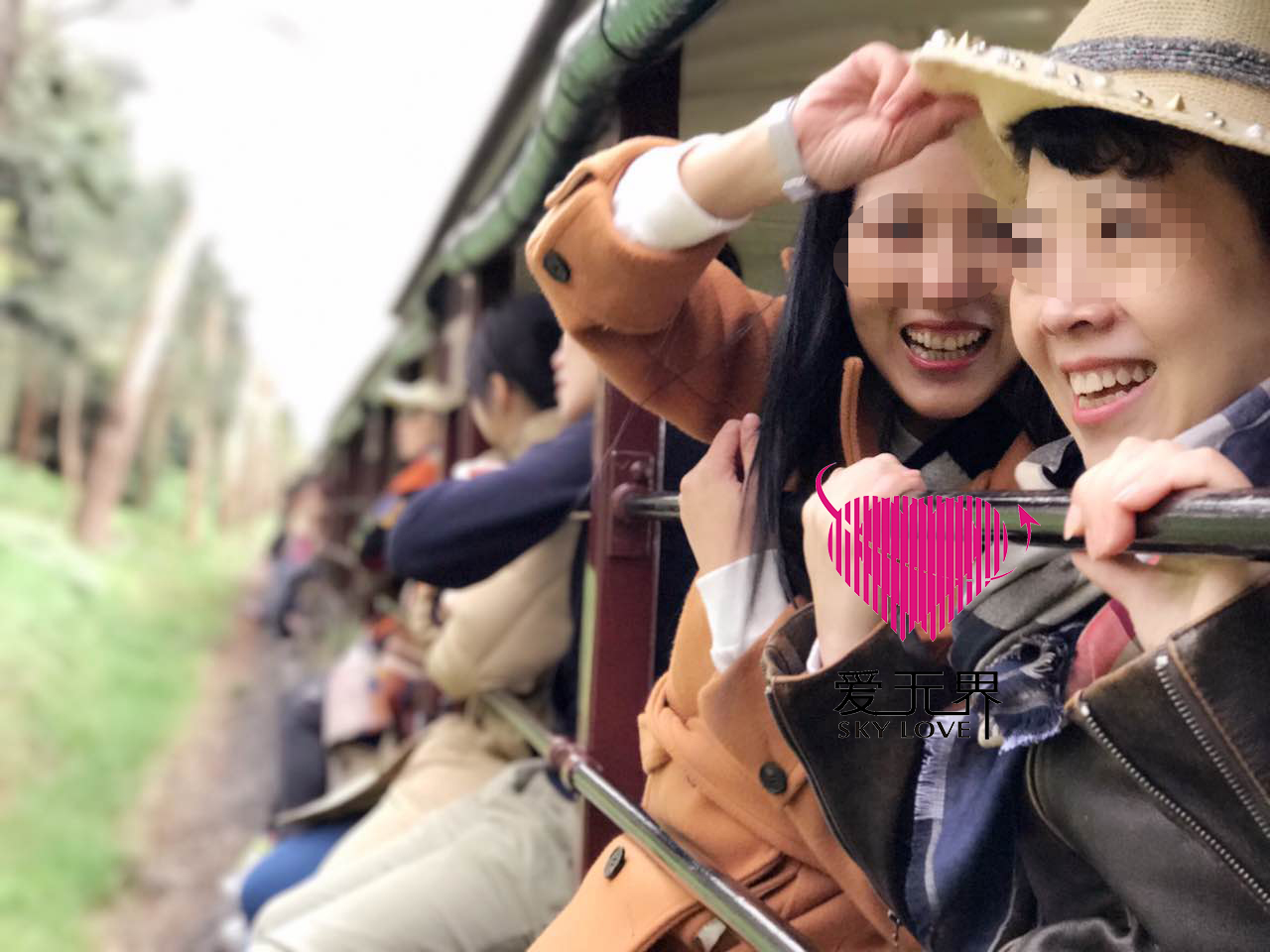 今天没有太阳,但天气不错,第一次坐蒸汽火车,姐妹们都很兴奋!