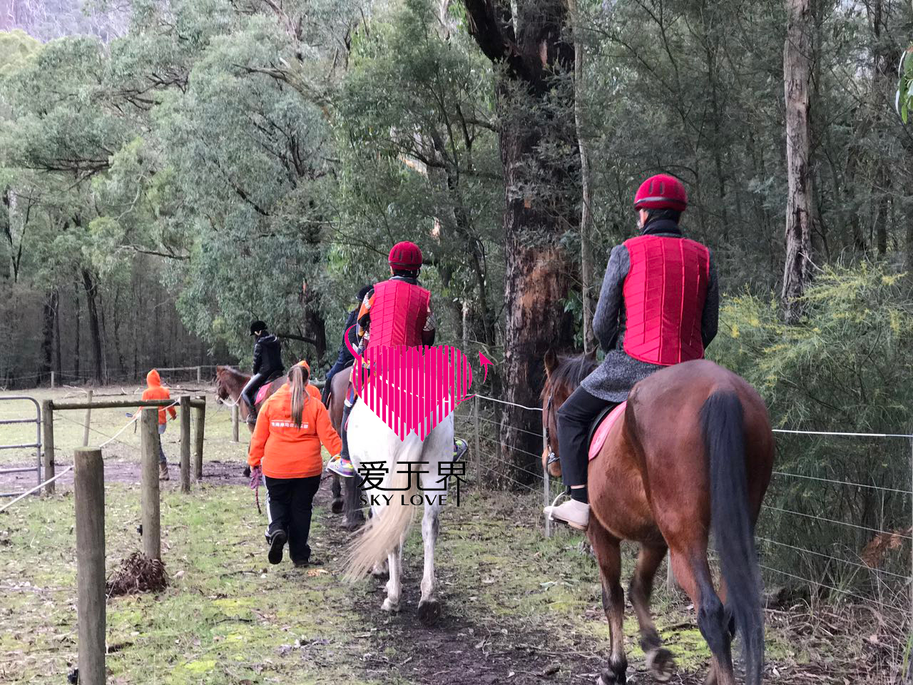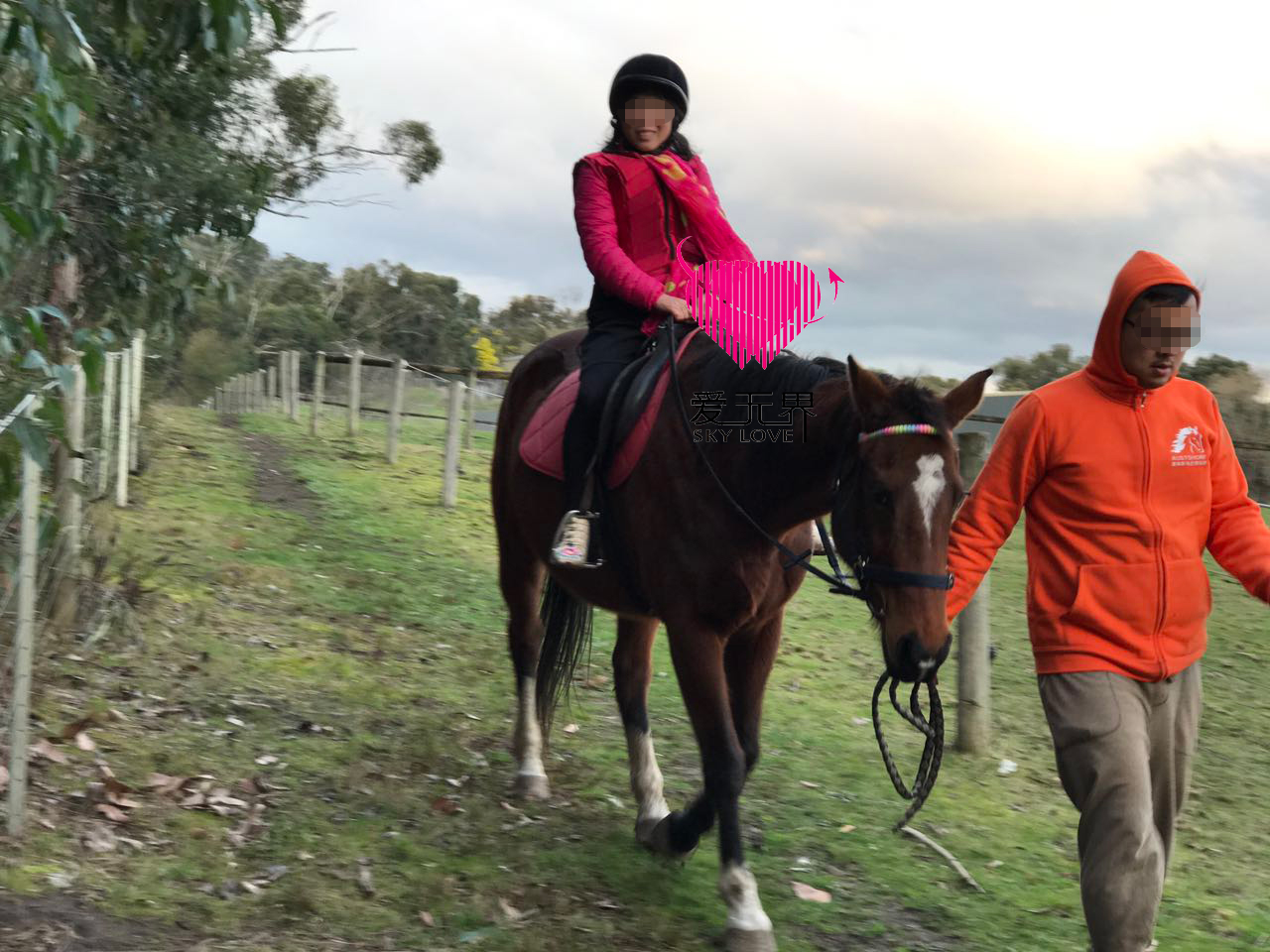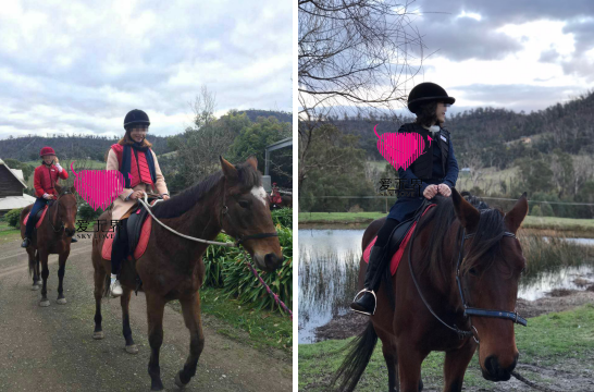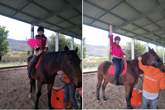 女士们骑上高大的澳洲骏马,一个个英姿煞爽,犹如在沙场上骁勇应战的巾帼英雄有木有!哈哈,没有啦,都有人牵着的呢,还不敢放开手!优雅的女士们,坐在马上悠然漫步在夕阳下的草原牧场,眺望远方,豁然开朗。此情此景,只需要享受当下!