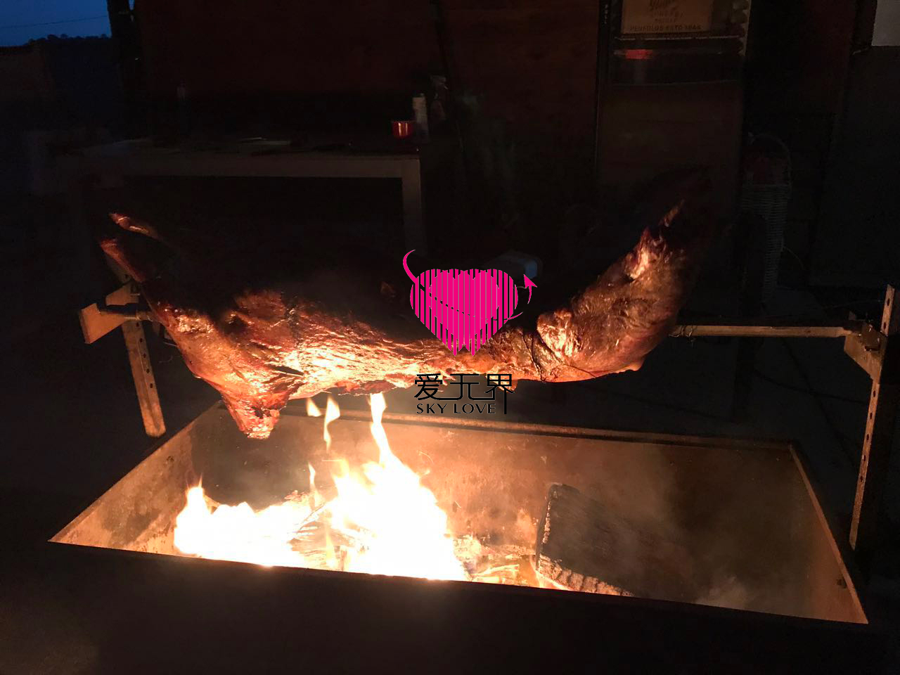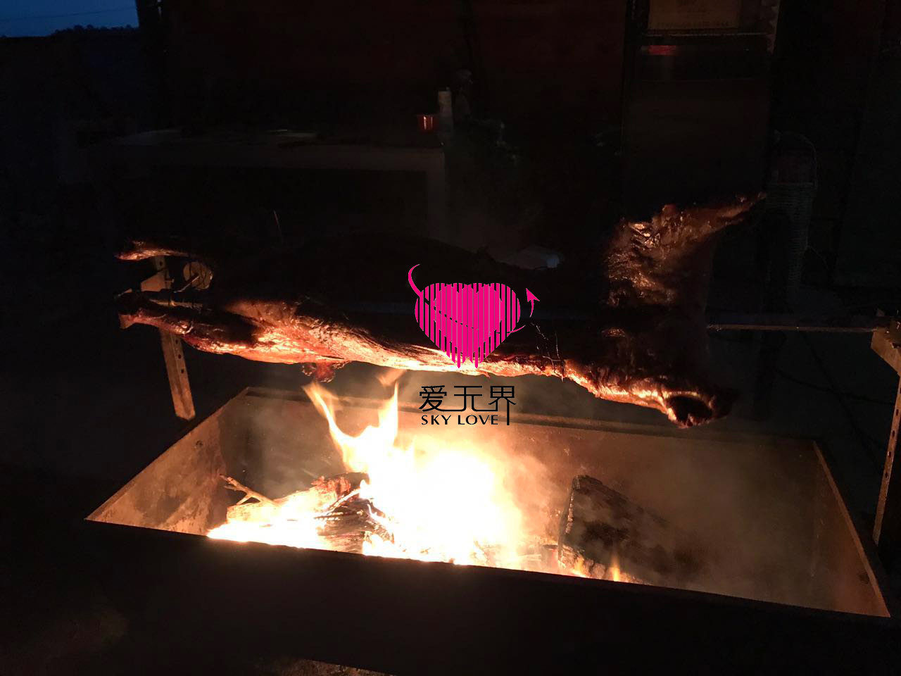 夜幕降临,大伙回到牧场营地。要说澳洲最好吃的肉就是羊肉了,从下午两点就开始烤的全羊,在大伙骑马归来后已经芳香四溢了,一旁的小狗都止不住留口水!