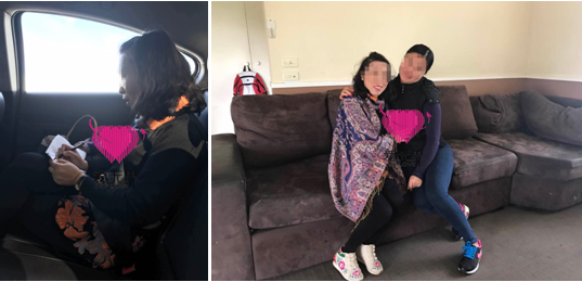 (陈女士和教练与成功会员唐女士见面哦,受到热情招待!唐女士来嫁来澳洲多年,混血宝宝女儿已经四岁,她和先生至今依然恩爱无比,连车都要情侣同款,白色是她先生的,红色是她的)