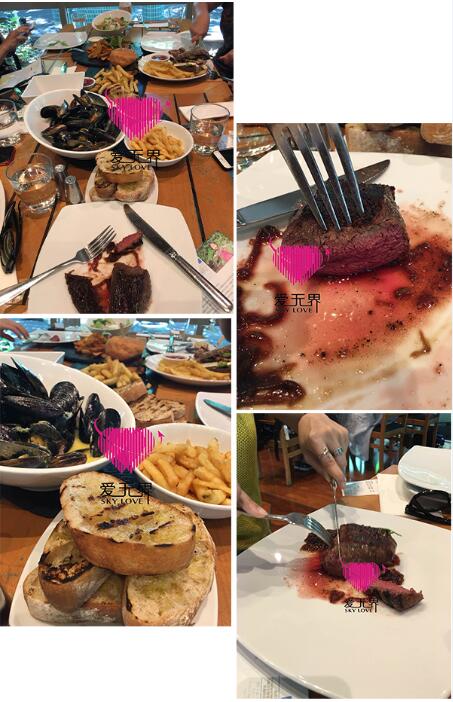 天上飞,海上漂!!玩了一上午,饥肠辘辘,海岛新鲜的西式大餐等着姐妹们呐!吃了几天的海鲜,要换换口味,吃澳洲著名的牛肉!还有烤肉!这鲜美的肉汁,让小编垂涎欲滴……哇哇哇
